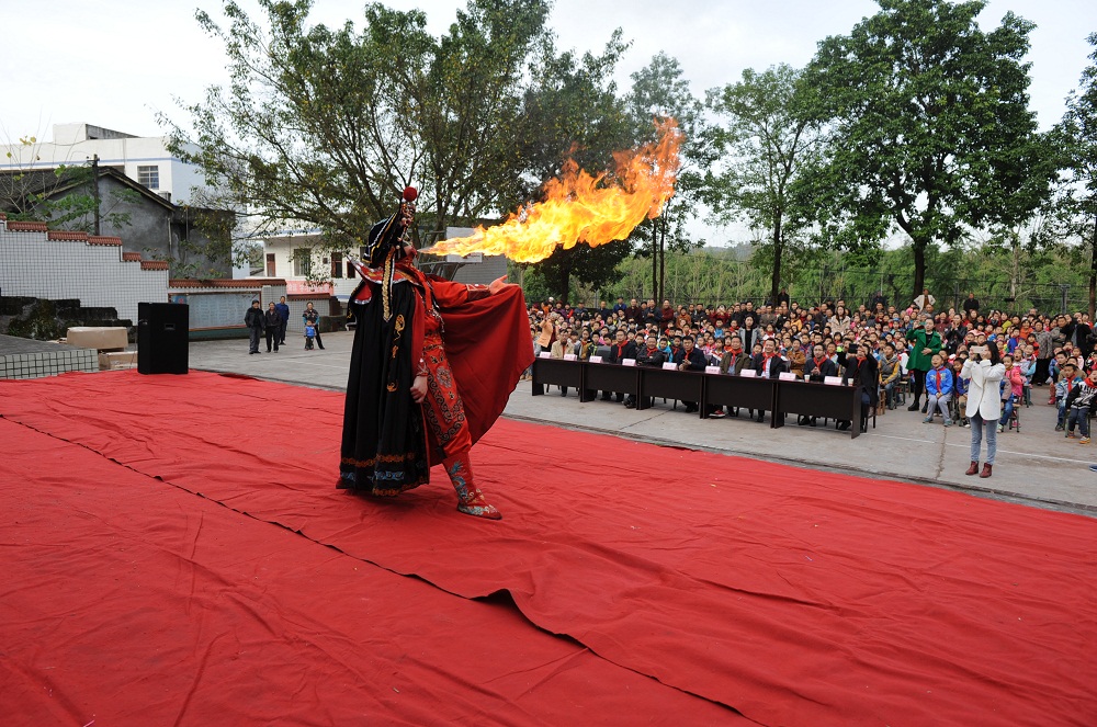青年志愿者为留守学生带来了《魔术》和《川剧变脸》等文艺节目,亦真亦幻的魔术场景,五彩斑斓的脸谱,神奇的口中喷火······异彩纷呈的表演让孩子们拍手叫绝。带河小学的同学们表演了舞蹈《让我们荡起双桨》和《低碳贝贝》,用欢快的舞姿感谢老师的谆谆教导和志愿者的倾情关爱。